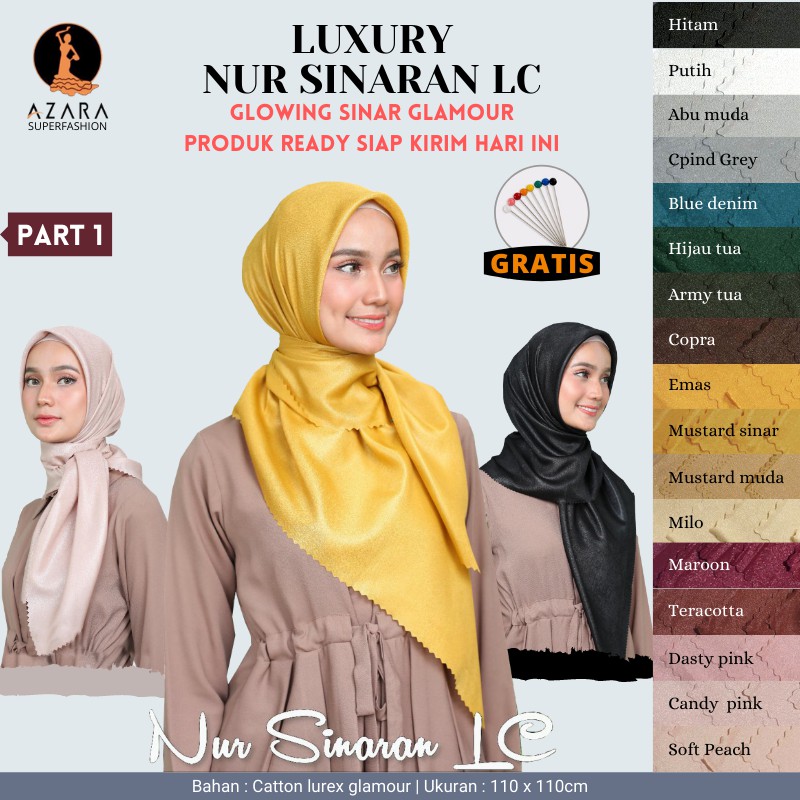 (GROSIR COD) Jilbab Azara luxury NUR sinar glamour Laser Cut kerudung hijab segiempat glowing