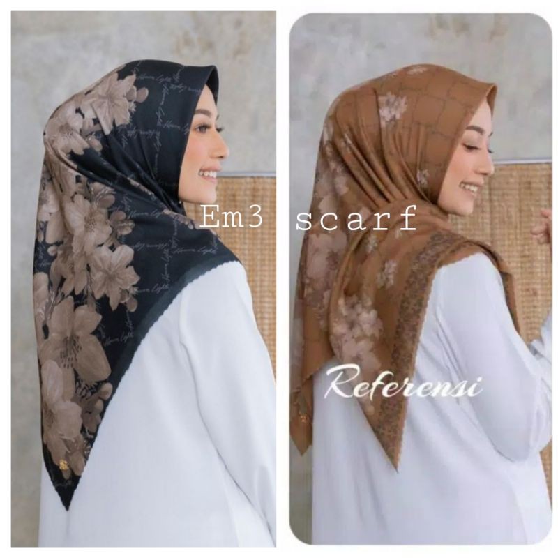 Em3 Scarf, GROSIR HIJAB SEGIEMPAT VOAL PREMIUM MOTIF TERLARIS INJI BIG FLOWER LASERCUT