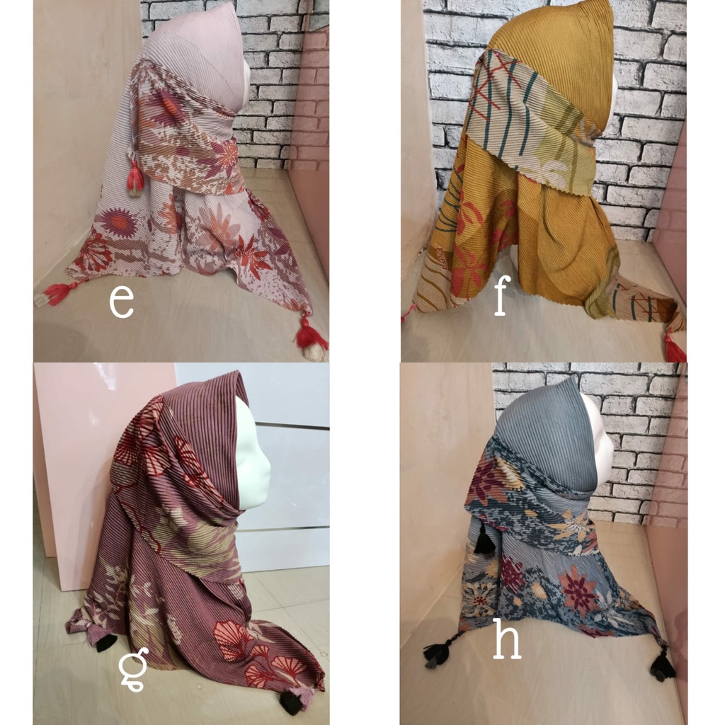 HIJAB SEGIEMPAT PLISKET MOTIF JAMBUL // PLISKET MOTIF TASEL// HIJAB PLISKET MOTIF POMPOM PREMIUM