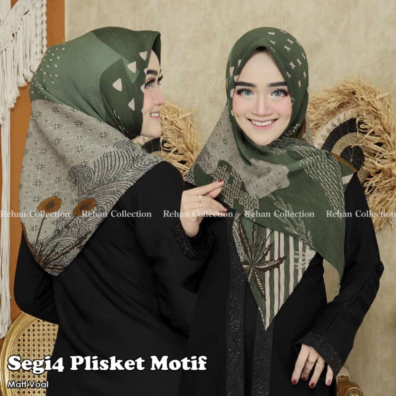 PROMO 1.1 Jilbab Segi Empat Voal Plisket Tassel Motif
