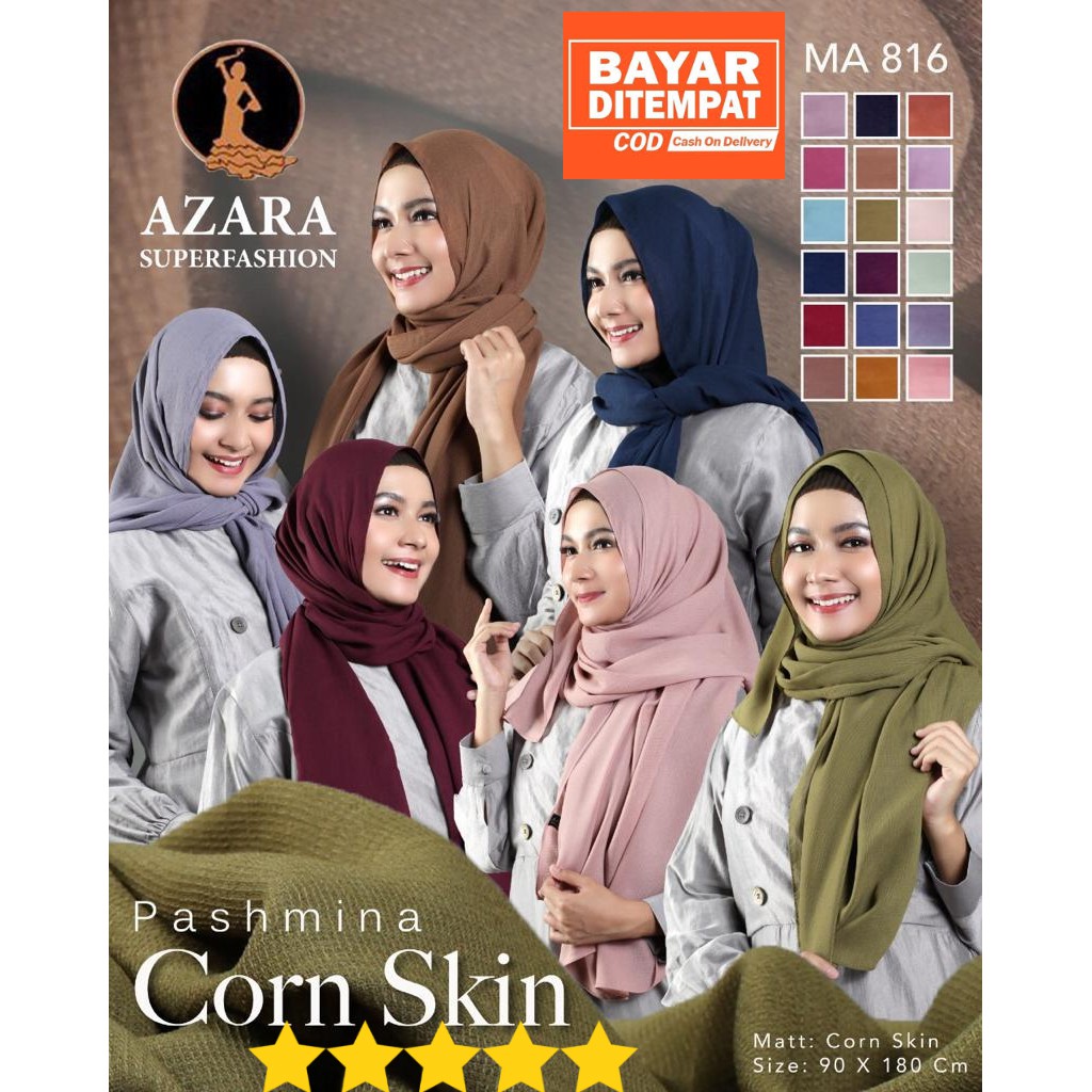 Kelebihan - Kelebihan membeli [Pilih WARNA] NEW PASHMINA CORNSKIN CORN SKIN ORI AZARA Hijab Jilbab Square Segiempat lembut ringan di Toko ini
